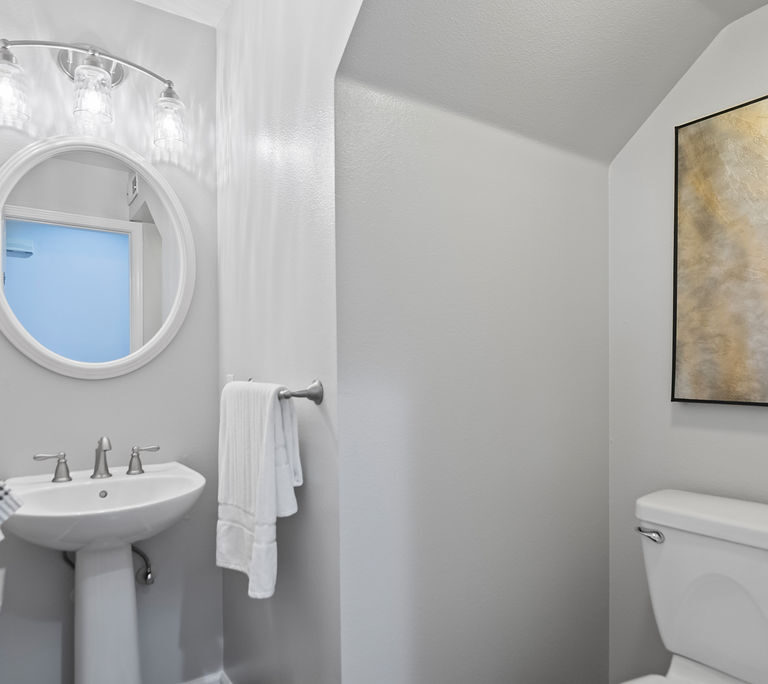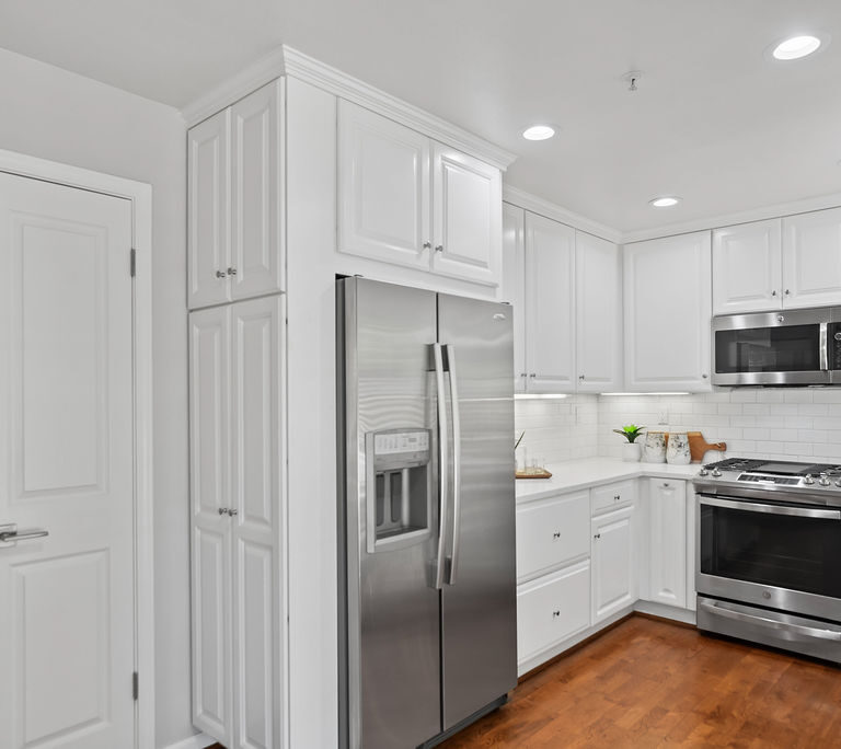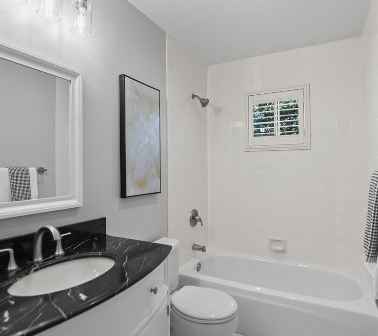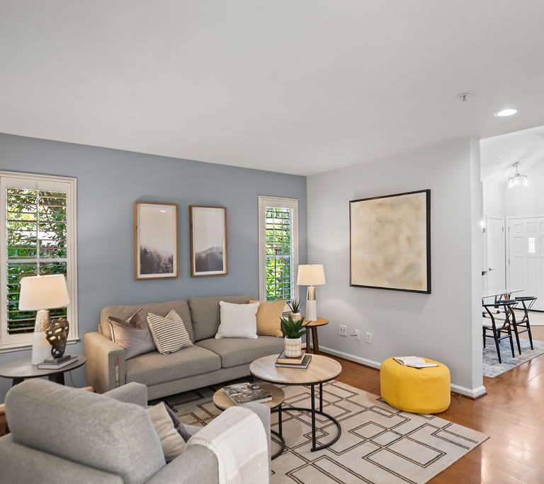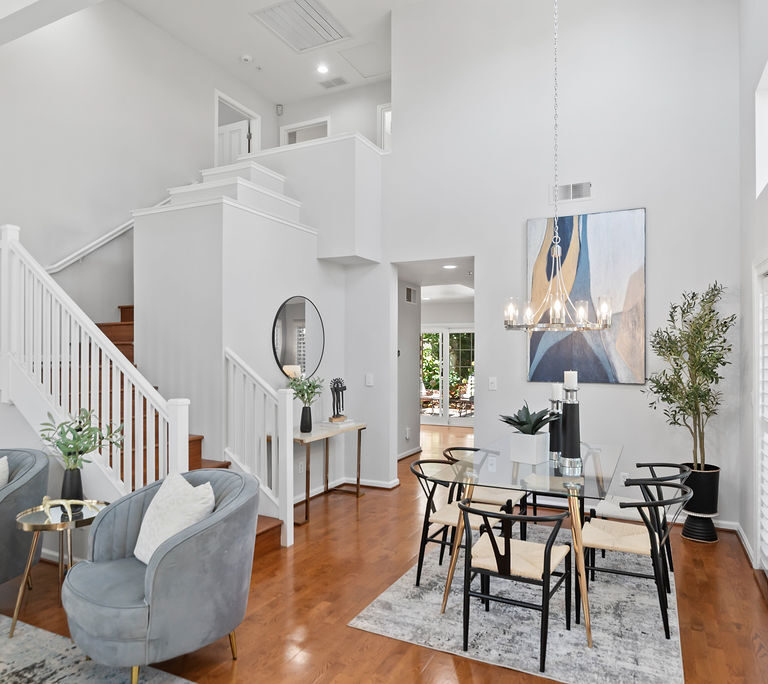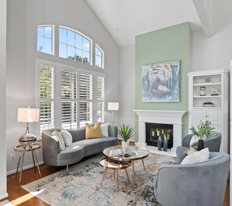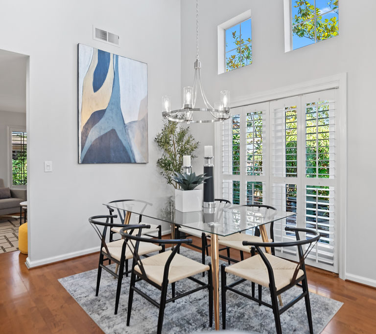 The modern kitchen shines with fresh white cabinets, spacious pantry, stainless steel appliances, attractive quartz counters with subway backsplash, and recessed lighting. Entertain in the dining room with windows that reach the ceiling or relax in the inviting family room. Host game nights in the living room with double-height ceilings and large windows that flood the room in natural light. Attractive plantation shutters enhance curb appeal and climate comfort.