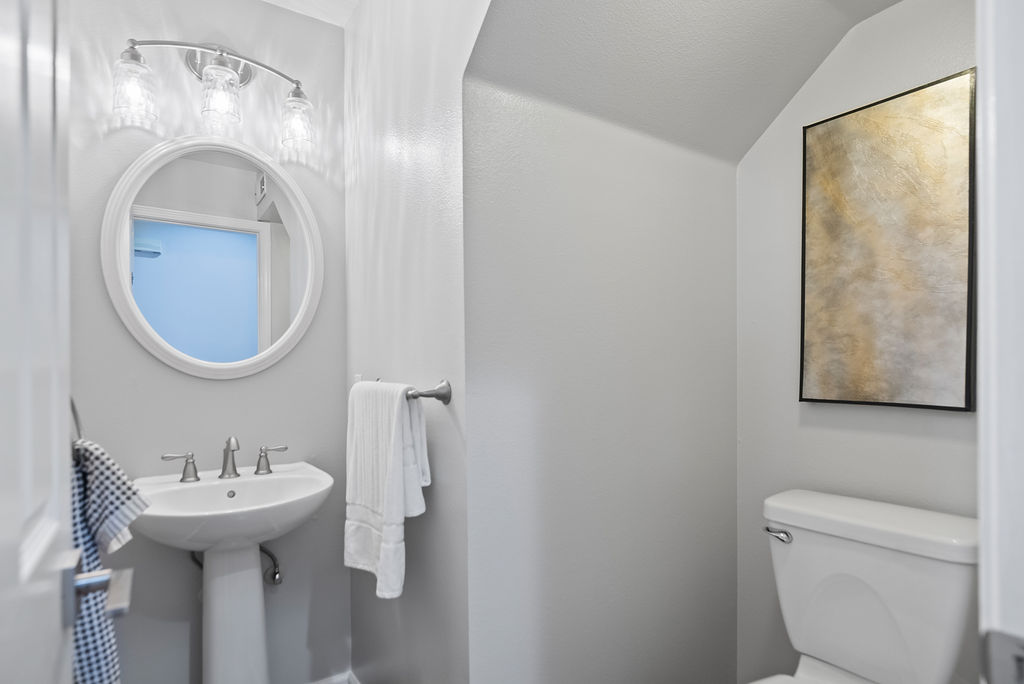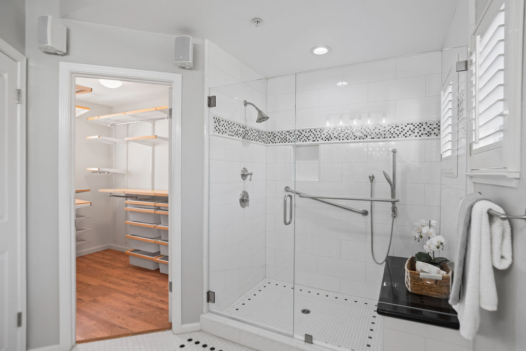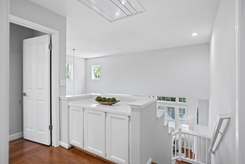 Upstairs, an open landing has built-in storage and the spacious primary suite boasts vaulted ceilings, gorgeous natural light, walk-in closet, and en-suite with double sinks and oversized tiled shower.