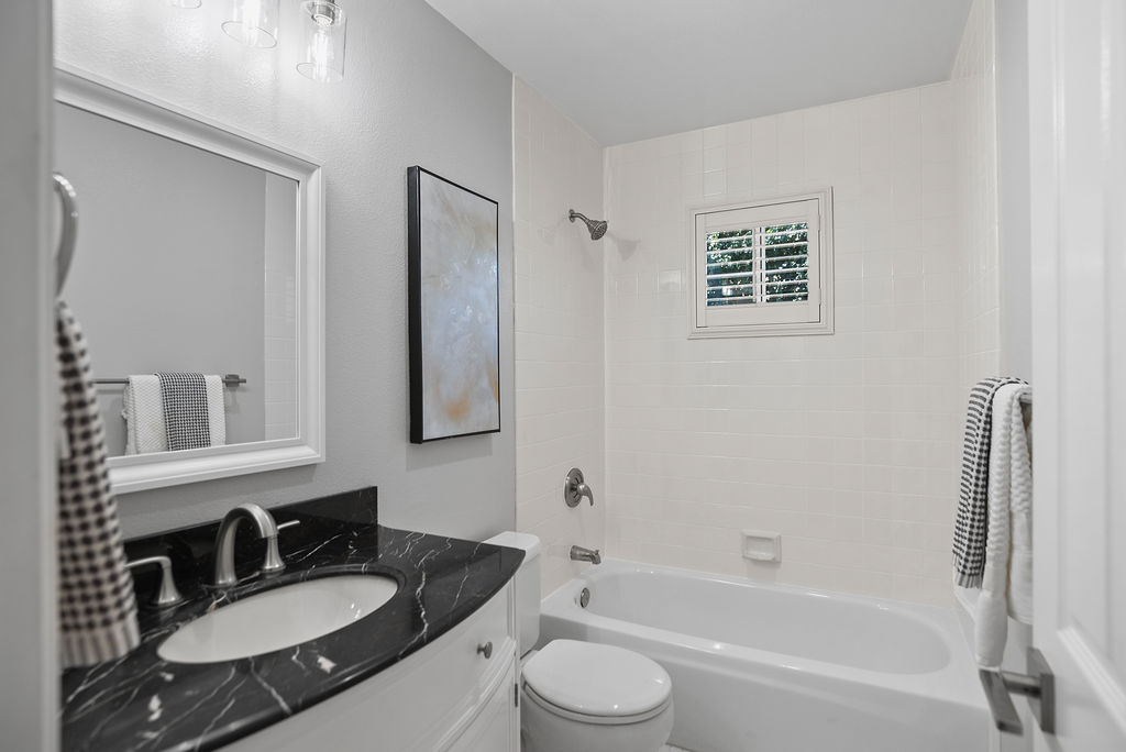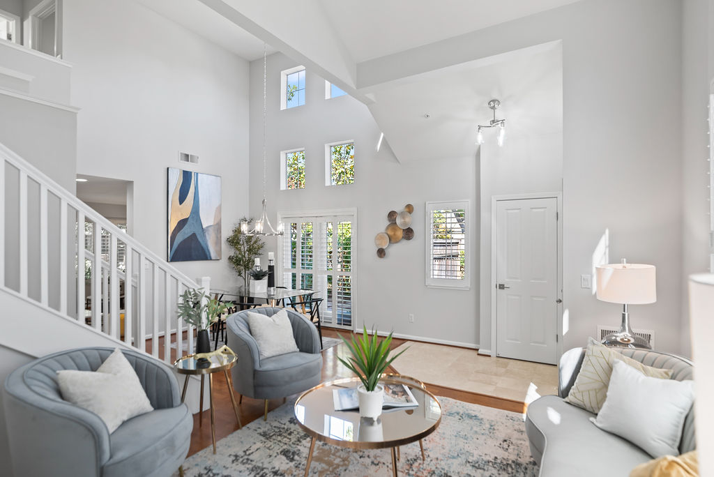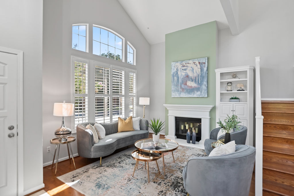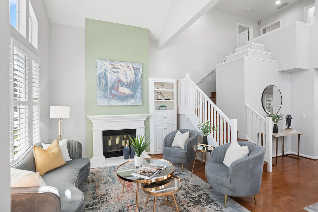 The modern kitchen shines with fresh white cabinets, spacious pantry, stainless steel appliances, attractive quartz counters with subway backsplash, and recessed lighting. Entertain in the dining room with windows that reach the ceiling or relax in the inviting family room. Host game nights in the living room with double-height ceilings and large windows that flood the room in natural light. Attractive plantation shutters enhance curb appeal and climate comfort.